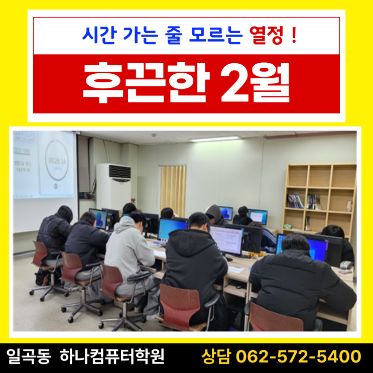 시간 가는 줄 모르는 열정, 후끈한 2월 하나컴퓨터학원! - 예비고1 컴퓨터활용능력 2급 & 전남여상 회계·세무과정