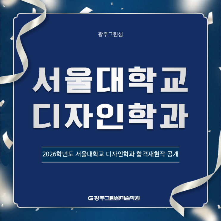 안녕하세요. 광주그린섬 입니다. 오늘은 서울대학교 디자인학과에 대한 소개와, 2026학년도 서울대학교 디자인학과 합격재현작 공개를 해 드리려고 합니다. 서울대학교 디자인학과는 대한민국 디자인 교육의 정점으로, 창의적 사고와 인문학적 소양을 겸비한 글로벌 디자인 리더를 양성하는 곳이랍니다. 2022학년도부터 공예과와 디자인과가 디자인학부로 통합되었다가, 최근 다시 전공의 전문성을 살리는 방향으로 운영되고 있습니다. 아무래도 시각 디자인, 제품 디자인, 공간 디자인, 영상 및 인터랙션 디자인 등 현대 디자인의 전 영역을 아우르며 디자인의 예술적 가치뿐만 아니라 사회적 책임, 기술과의 융합, 인문학적 통찰력을 중시하는....... <img src="https://blogthumb.pstatic.net/MjAyNjAyMDZfNjEg/MDAxNzcwMzYyNDQxNTMy.86c3RxF0FQh52ll4-0M59cF-VpGQ4WAMXvlDqjEOI_sg.0w_6sAWKTI7Tlq4404TTmckwij2f5UTbxpiOLcX1emQg.PNG/0.png?type=s3" />