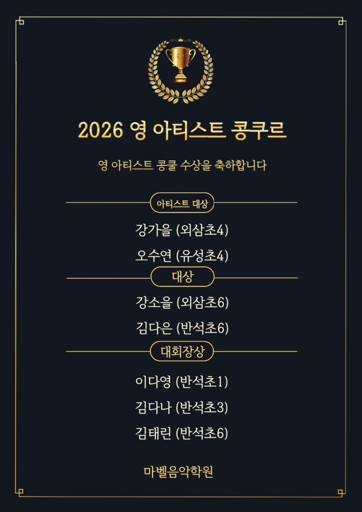 [대전 반석동 마벨음악학원] 2026년 영 아티스트 콩쿠르