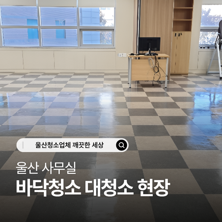 안녕하세요 울산 청소업체 깨끗한 세상입니다. 목차 1.집기 이동 및 작업 공간 확보 2.바닥 먼지 및 이물질 제거 3.바닥 세척 작업 4.집기 정리 마무리 사무실은 직원들이 대부분의 시간을 보내는 공간인 만큼 언제나 청결한 상태를 유지하는 것이 좋습니다. 하지만 책상과 캐비닛, 각종 집기들이 놓여 있는 상태에서 바닥 전체를 제대로 정리하기가 쉽지 않은데요 특히 장기간 같은 위치에 놓여 있던 가구 아래에는 먼지와 오염이 쌓이기 쉬워 한 번씩 집기를 이동하여 바닥을 비운 다음 평소 청소가 어려웠던 부분까지 정리를 해주는 것이 좋습니다. 이번 현장은 사무실 내부를 정리하면서 진행한 대청소 사례로 바닥상태를 제대로 확인하....... <img src="https://blogthumb.pstatic.net/MjAyNjAzMTFfMjYx/MDAxNzczMTk2OTA5NTE5.SErkDQolCqTsPobVHSpe0qt_tGoqQ-uiYQnxffvXu3wg.pUQo4BHpcPUZ6L3ueJnswpwRgsNEuFUE31b9QOGF8-og.PNG/%C1%A6%B8%F1%C0%BB_%C0%D4%B7%C2%C7%D8%C1%D6%BC%BC%BF%E4..png?type=s3" />