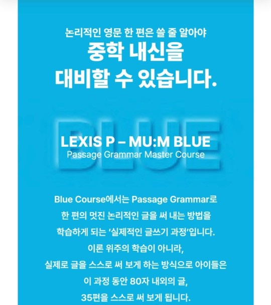 세종시 반곡동 영어학원 추천 뮤엠영어 반곡학원 블루 코스 안내 (초등 고학년~중등 입학 전)