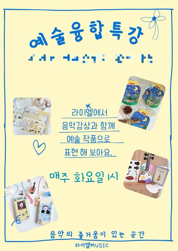첫번째. 예술융합 수업 이야기 다양한 장르의 음악을 들어보고 요약 정리한 글들의 빈칸을 채워보았어요. 그 파일을 핸드폰으로 만들어보고 가정에서 또한 큐알을 통해 음악 감상하며 되뇌어보는 모습이었어요^^ 두번째. 예술 융합 수업 이야기 쇼팽의 녹턴을 알아보고 감상해 보았어요. 조용한 밤 분위기를 나타낸 서정적인 피아노곡. 쇼팽의 녹턴을 들어보며 밤 분위기를 미술 작품으로 연출 해 보았답니다^^♡ 예술 융합 수업을 통해 음악을 귀로 듣고 그 곡에 대하여 알아보며 예술 작품으로 표현하는 과정에서 온전히 자신의 것으로 만들어집니다. 뜻깊고 값진 시간들이 추억과 함께 길게 남는 음악이 될 거라 생각해요 라이엘 Piano♬....... <img src="https://blogthumb.pstatic.net/MjAyNjAxMjdfMjIx/MDAxNzY5NTIxMDg1MzE1.X83n06iE6l-780t-twslLPlpS2Llhwe_l90w77qmBp8g.pgmx47nsXkemmnPkgCeWLgsHEdmGGG2gABqI1xTanNAg.JPEG/output%A3%DF1959334650.jpg?type=s3" />