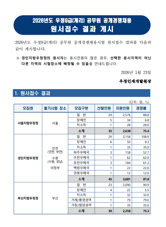 26.우정9급(계리) 원서접수 결과