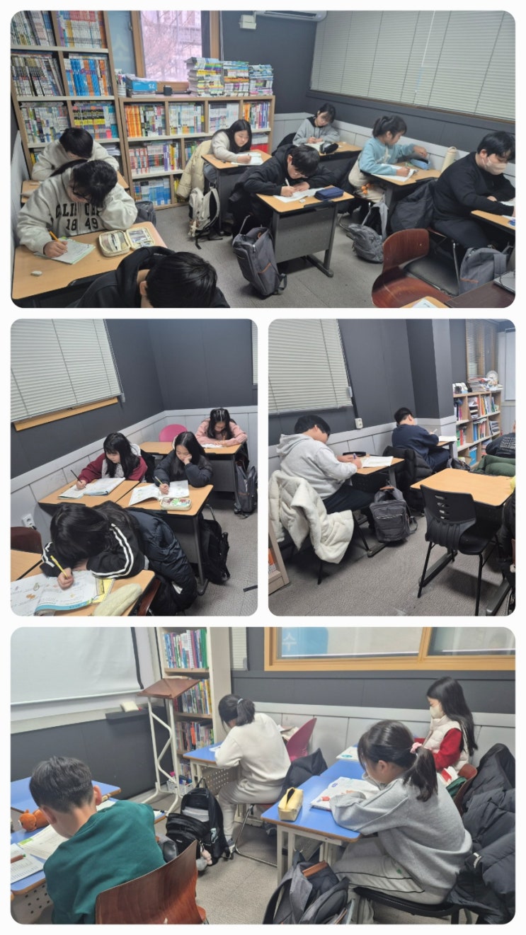1월 12일 드디어 동계 자습 시작! 너무 긴장된 나머지 전날 잠도 설쳤는데 당직이신 고등부 수학 쌤도 그렇다고 하셨다네요. 메카 초등부 30명은 지각생이 없을 정도로 열정을 보여 원장으로써 참 기특할 뿐이에요. 초등부 수학 선생님들은 총 출동해서 초중등부 수학 봐주시기에 정신이 없지만 이런 모습이 원장을 살아 숨쉬게 하네요. 쌤들 감사합니다. 90명 정도의 인원이 신청해 출발했는데 첫날이라 좀 힘들어 하는 학생들이 보이네요. 중간중간 졸리면 사탕도 먹이고 10시 50분부터 11시 10분까지 간식 타임~~~ 간식시간이 되니 눈이 다시 똘망똘망~~~ 얘들아 자습 3일차만 지나면 공부 패턴 찾을 수 있다 ~~~ 다같이 홧팅! 늦게까지 게임....... <img src="https://blogthumb.pstatic.net/MjAyNjAxMTJfMjM0/MDAxNzY4MjAzNzYxNDYy.k4fpohX83fkYCdYe5SoBQGPrlPuD4owsqFaNxO-xdqUg.OYeJCHbrRF33nARTRXKoO6_B8MS8rHDToL7ZxWAtPkAg.JPEG/KakaoTalk_20260112_163201459_01.jpg?type=s3" />