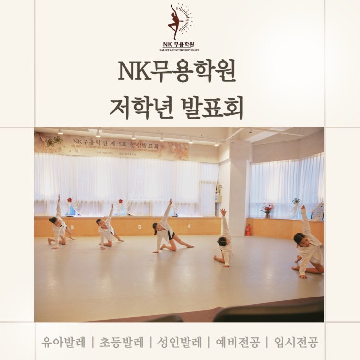 안녕하세요 NK 무용학원 입니다 아이들의 성장은 어느 날 갑자기 완성되는 것이 아니라, 작은 움직임 하나하나가 쌓이며 만들어집니다. 이번 NK무용학원 베이직부 저학년 발표회는 그 과정을 가장 따뜻하게 보여준 시간이었습니다. 무대 위에서 아이들은 “잘해야 한다”는 부담보다 움직임을 즐기고 표현하는 경험을 먼저 마주했습니다. 베이직부 저학년, 현대무용으로 시작하는 이유 저학년 아이들에게 현대무용은 어렵고 낯선 장르가 아닙니다. 오히려 몸을 자유롭게 인식하고, 균형과 유연성, 리듬을 자연스럽게 익힐 수 있는 가장 기초적인 움직임 교육에 가깝습니다. NK무용학원의 베이직부 수업은 지난 커리큘럼에서도 강조했듯이 발레에....... <img src="https://blogthumb.pstatic.net/MjAyNjAxMjRfNyAg/MDAxNzY5MjYxNjk2Nzg5.g9n0ZrB7Nai4UM9YyvDJMkilz4qiXs162LYIMcut52Yg.iVUYmVRfWh_AMtd_LU2LglgSVAPX9OlO67G0FaY4C0cg.JPEG/%B1%E8%B9%CE%BF%B5_%BD%E6%B3%D7%C0%CF.jpg?type=s3" />