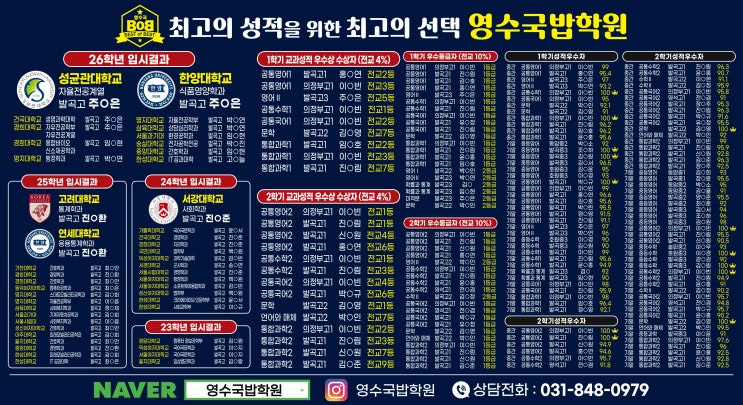 2026학년 대학입시결과와 2025학년 성적우수자결과 입니다. 대입결과 : 성균관대학교, 한양대학교, 중앙대학교, 경희대학교, 숭실대학교, 서울과기대, 명지대학교, 한성대학교, 삼육대학교 등 인서울 대학과 신한대학교, 차의과대학교, 경동대학, 대구카톨릭대학교, 인덕대학교 등 여러대학에 우리 아이들이 진학했습니다. 고등학교 3년간 노력한 결과 본인들이 원하는 대학과 원하는 학과에 진학한 우리아이들 무척 자랑스럽습니다. 앞으로 펼쳐질 멋진 대학생활을 응원합니다. 2025학년 성적우수자 전교4%이내에 들어 교과우수상을 수상한 학생들과 내신 9등급제인 고2,고3은 2등급까지 그리고 내신 5등급제인 고1은 1등급까지 성적을 정리해 보....... <img src="https://blogthumb.pstatic.net/MjAyNjAxMjdfMTQw/MDAxNzY5NDk5NTg5NjAw.CCtPwBN9Q_gbuoUt2SrbqdiLXQpNcCxaBGHpWCQxe7cg.PMw3QluFkJp1iPVVt-Nhblu5lPr32MJPDbe-WpWicvYg.JPEG/001.jpg?type=s3" />