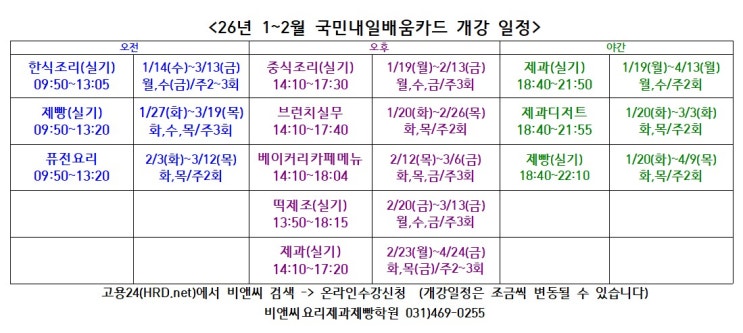 1~2월 국민내일배움카드 개강일정