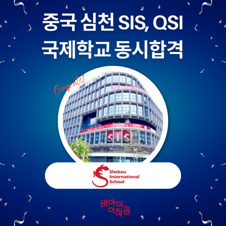 중국 심천 국제학교 SIS · QSI 동시 합격 스토리 중국 주재원 학부모님들 사이에서 가장 많이 거론되는 국제도시 중 하나, 중국 심천(Shenzhen). 그중에서도 SIS(Shenzhen International School)와 QSI(Quality School International of Shenzhen)는 입학 난이도와 커리큘럼 면에서 항상 상위권으로 언급되는 학교입니다. 이번에 초등 3학년 학생이 SIS와 QSI에 동시에 합격하며, 많은 분들이 궁금해하시는 질문들이 다시 한번 떠올랐습니다. “SIS는 왜 그렇게 입학이 어렵다고 하나요?” “SIS와 QSI, 어떤 차이가 있나요?” “중국 주재원들은 어떤 기준으로 학교를 선택할까요?” 오늘은 이 질문들을 중심으로 정리해 보겠습니다. 1️⃣ SIS는....... <img src="https://blogthumb.pstatic.net/MjAyNjAxMjFfMTI1/MDAxNzY4OTg1MzU3MzUz.5nyXI_5aiof031pBhYQGSsQsxoLvnsd-U9zhjuvqQcMg.uMYa4HzKmGs-ZukEpBC9C04JOiOlyPKtfoxt7ZDep8gg.PNG/%A4%B7.png?type=s3" />