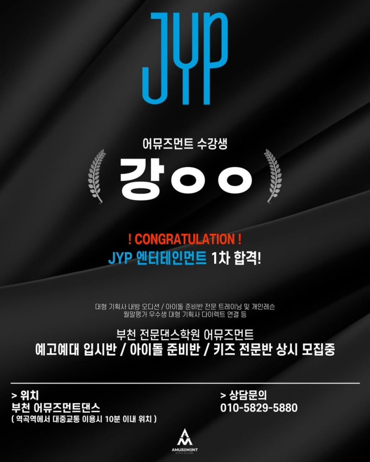 부천 댄스학원 대형 기획사 오디션 합격 안내 JYP 엔터테인먼트 합격❗️강00
