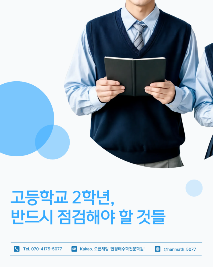 안녕하세요 광명시 수학 강자 한경태 수학전문학원입니다. 고2, 지금이 진짜 시작입니다 2학년은 단순히 ‘한 학년 올라가는 시기’가 아닙니다. 1학년을 점검하고, 3학년을 준비하는 가장 전략적인 학년입니다. 가장 먼저 해야 할 일은 이것입니다. ✔ 1학년 학생부 출력 ✔ 객관적인 분석 ✔ 부족한 부분 보완 계획 수립 고2는 ‘보완의 마지막 기회’입니다. 1. 진로, 확신이 없으면 전략도 없습니다 현재 고교 교육은 고교학점제를 기반으로 운영됩니다. 진로와 연결되지 않은 과목 선택은 설득력을 잃습니다. ✔ 진로가 1학년 때와 동일한가? ✔ 바뀌었다면 담임선생님과 상담했는가? ✔ 3학년 선택과목까지 고려했는가? 학생부종합전형은 단....... <img src="https://blogthumb.pstatic.net/MjAyNjAzMjhfMjkw/MDAxNzc0Njc3MTk3ODI1.xetl4Qxoh3tJupUKHPOQS-SVViy0t_lg_T0M1uJI1Uwg.vRBBgtILMsAM3HHxRIwPbzxjfka7TMpvwGtLHrR4OaEg.PNG/%BC%AD%BF%AC%B0%ED_%C0%D4%BD%C3_%BA%AF%C8%AD_%282%29.png?type=s3" />