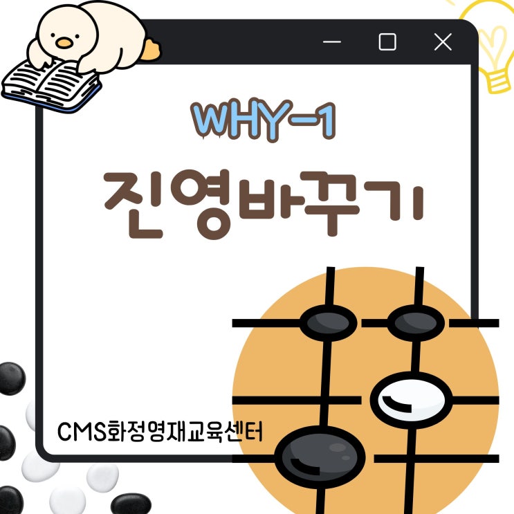 WHY-1 진영바꾸기 2학년 WHY 수업 – 8주 테마 ‘진영 바꾸기’ CMS화정영재교육센터에서 진행된 2학년 WHY 수업에서는 ‘진영 바꾸기’를 주제로 다양한 활동을 진행하였습니다. 학생들은 정해진 규칙에 따라 바둑돌을 하나씩 옮겨 보며, 이동 과정을 차례대로 기록해 보았습니다. 또한 바둑돌의 이동 순서를 그림으로 표현하고, 최소한의 횟수로 서로의 위치를 바꾸는 방법을 찾아보는 활동을 하였습니다. 이러한 활동을 통해 문제 해결 과정을 스스로 정리하고, 논리적으로 사고하는 연습을 할 수 있었습니다. 앞으로도 다양한 사고 활동을 통해 깊이 있는 생각을 키워 나갈 예정입니다. <img src="https://blogthumb.pstatic.net/MjAyNjAxMzFfMTcw/MDAxNzY5ODM2NjcwMzYw.r0ausgo7DLfJiaWIpDq_vyZ_FW6WJ--L9gJ2m9IWRW4g.OVONxJ2rXuvDMjEx-SPK5J0cdzxlGc7Wdnx96zjZx3Ig.JPEG/%BA%ED%B7%CE%B1%D7%BF%EB%BF%DC_%287%29.jpg?type=s3" />