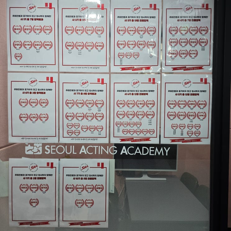 일산연기학원 ) 입시전문 서울연기학원 상담실에 샤1기부터 샤10기까지 기수별로 정리한 최종합격결과 - 제1편 샤1기~샤6기 울산에서
