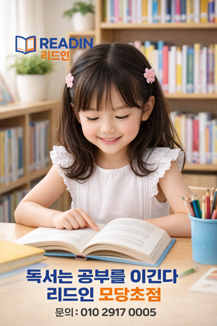 <한글을 못 읽던 아이, 1년 만에 혼자 책 읽는 아이가 되기까지> 안녕하세요. 중산동 아이파크 맞은편, 리드인 독서논술학원 모당초점입니다. 오늘은 한글을 거의 읽지 못하던 아이가 1년 동안 어떻게 성장했는지 이야기를 전해드리려고 합니다. 처음 시작은 ‘가나라라’ 수준이었습니다 이 아이는 3월 입학을 앞두고 1월에 처음 학원을 방문했습니다. 당시 읽기 수준은 ‘가나라라’ 정도만 겨우 읽을 수 있는 상태였고, 스스로 책을 읽기에는 어려움이 많았습니다. ✏️ 이렇게 수업을 진행했습니다 아이의 읽기 기초를 탄탄히 다지기 위해 다음과 같은 방식으로 수업을 진행했습니다. 리드인 기초도서(7세 과정) → 처음에는 읽어....... <img src="https://blogthumb.pstatic.net/MjAyNjAzMjNfMjU2/MDAxNzc0MjI2NzA1MTc1.VWmDvX50j_xEGFhkAaodumawjhG0H2fkNIK1TYl5jsog.ooE5jB4BtfZoDFhz8msb_GPIcJp8STsoQb8bc309gQgg.PNG/900%A3%DFfile%A3%DF000000009f7c7209a2d7e224bc38b9a7.png?type=s3" />