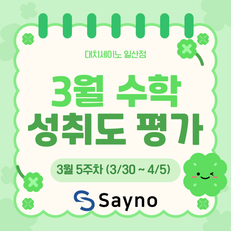 일산 중등수학학원 3월 5주차 수학 성취도 평가 안내