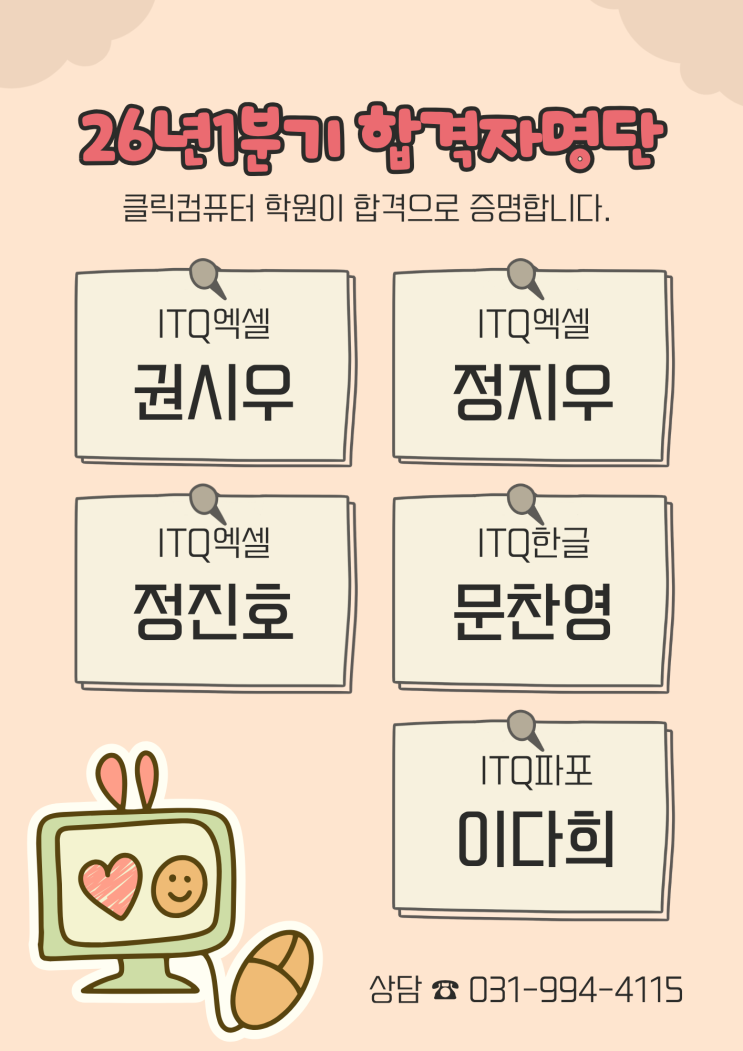 클릭컴퓨터 자격증 합격자 소식 전해요