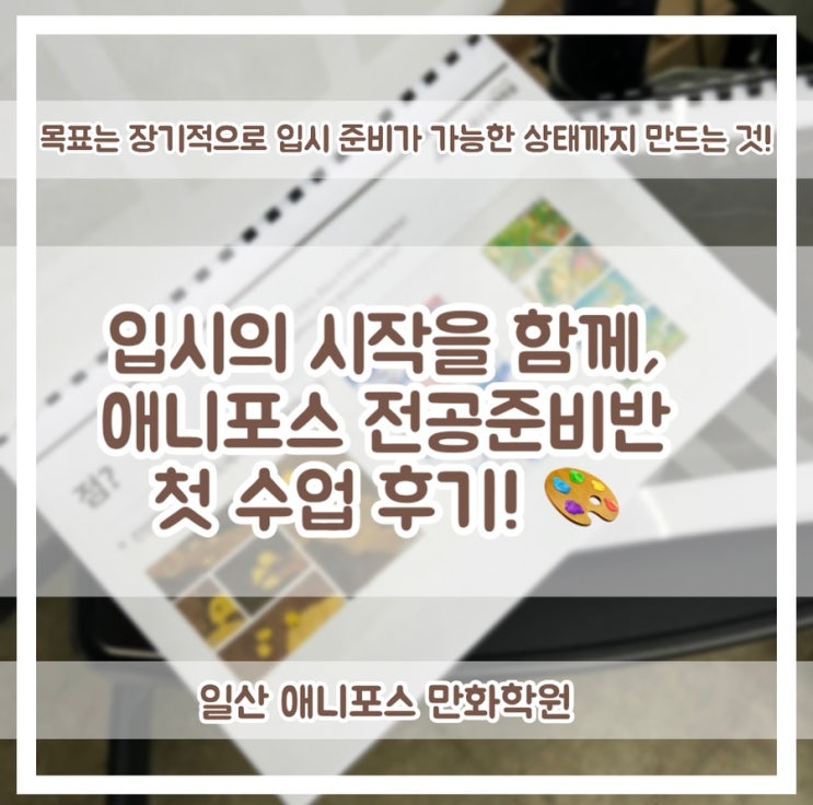 안녕하세요~! 일산 애니포스입니다! 오늘은 저희 애니포스 미술학원 CG반에서 새롭게 진행되고 있는 입시 대비 전공준비반을 소개해드리려고 합니다! 대학 입시를 막 시작하기엔 아직 부담스럽거나 그렇다고 아무 준비 없이 시간을 보내기엔 아쉬운 중학생, 고등학생 친구들을 위해 준비된 수업이에요✨ 전공준비반 소개 전공준비반이라는 이름으로 만들어진 이번 수업은 몇년후 대입을 진행하고자하는 중학생, 또는 입시반(고1,2의 입시준비반or 대입을 진행하는 고3 입시반)으로의 수강이 고민되는 일부 고등학생을 위해 개설된 수업으로 기존 금요일 CG반(취미반)과는 별도로 운영되는, 입시를 위한 기초 실력 형성 클래스입니다. 말 그대로 입....... <img src="https://blogthumb.pstatic.net/MjAyNjAzMzBfMjcy/MDAxNzc0ODczMDMwNjE1.k3bb102RiV6Zar1Cmphoo_C8Mp6DoYDxFx5cMo0DKmYg.8tDB9GdJqjur2JrD4RYiuIWAKK51A9f_f-GITqOZ46Qg.JPEG/IMG_4233.jpg?type=s3" />