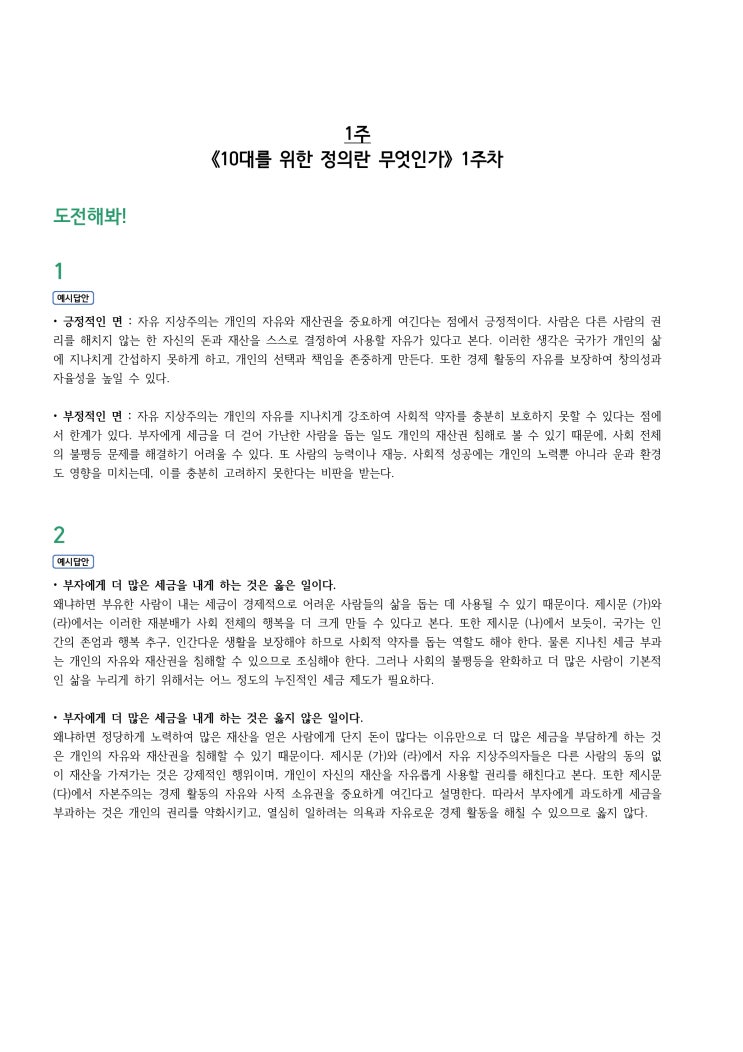 중1 5월 1주차 워크북 '도전해봐!' 예시답안