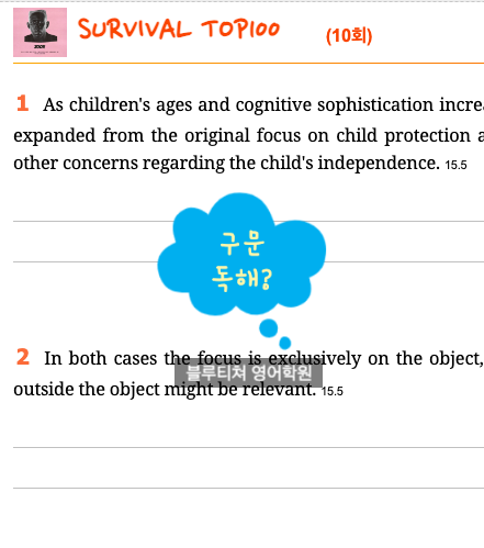 지금부터 드리는 말씀은 영어실력을 자랑하기 위함도 아니고 오직 현실적인 이야기를 하기 위함입니다. 요새 영어 어렵습니다. 1990년대 혹은 2000년대 초반의 수능을 경험하신 부모님 세대의 영어와는 완전히 다른 영어입니다. (죄송합니다 ㅜㅜ) 체계적, 과학적으로 접근하지 않으면 '감 독해', '소설 독해'에 머무를 수 밖에 없습니다. 그것이 제가 구문독해에 집착하는 이유입니다. 어떤 검색도 없이 다음의 문장을 해석해 보세요. The changes in diet that usually accompany higher incomes will require relatively greater increases in the production of feed grains, rather than food grains, as foods of anim....... <img src="https://blogthumb.pstatic.net/MjAyNjAxMjFfMzIg/MDAxNzY4OTgyMzgxODg5.YjH5pl4WZIVv5WgDE_VF0AXWqYf8NpBZre9kHwHrX7Yg.c_i1262Oj_ndNlYCb50QF4NQXAahHIdM7xqg3RjEmPgg.PNG/%B9%AB%C1%A6.png?type=s3" />