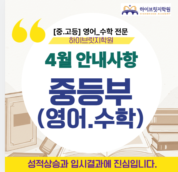 [중등부_4월소식] 구리 수택동 토평동 중등영어수학학원_하이브릿지학원/구리중.구리여중.인창중.토평중