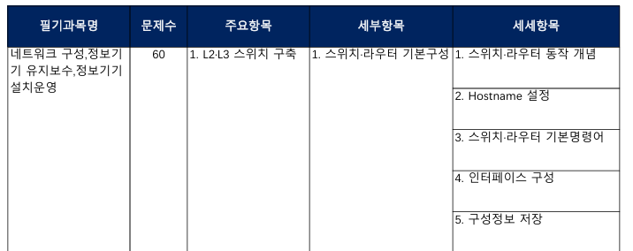 2026년부터 정보기기운용기능사 필기 내용이 일부 변경이 되었습니다. 이에 훈련생분들의 변경된 내용을 보강하고자 업로드 하오니 한번 보시고 시험에 응시하여 주시기 바랍니다. 첫번째, L3,L3 스위치 구축 내용이 추가되었습니다. 실기에서 하는 내용의 일부가 필기형식으로 출제가 되는 것 같습니다. 혹시 1회 시험 보신분들은 galmaeitcom@naver.com 으로 알려주시면 추수려 내용을 추가적으로 만들어 나아가도록 하겠습니다. 첫번째, L3,L3 스위치 구축 내용은 이정도 확인만 하셔도 문제푸는데 어렵지 않을 꺼라 생각하며, 다음 1.2도 정리해서 업로드 하겠습니다. #갈매IT컴퓨터아트학원 #갈매동컴퓨터학원 #신내동컴퓨터학원 #중랑구컴....... <img src="https://blogthumb.pstatic.net/MjAyNjAzMjRfMTE4/MDAxNzc0MzIxNTg4NTQ3.8EUHfM5R9J-njVoeaa11GSYDI1EjfeV5g9kuftYcKNYg.DoI9hSm_qqy-HLB3etbi6Dz1KknX46QCL1mbBxi0VfMg.PNG/image.png?type=s3" />