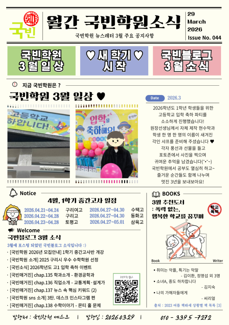 [구리수학학원 국빈월간매거진] 2026년 3월호 국빈학원 소식 | 구리시수학학원추천 | 장자호수공원역 | 구리소수정예수학학원 | 구리시우수수학학원 | 토평동수학 | 교문동수학