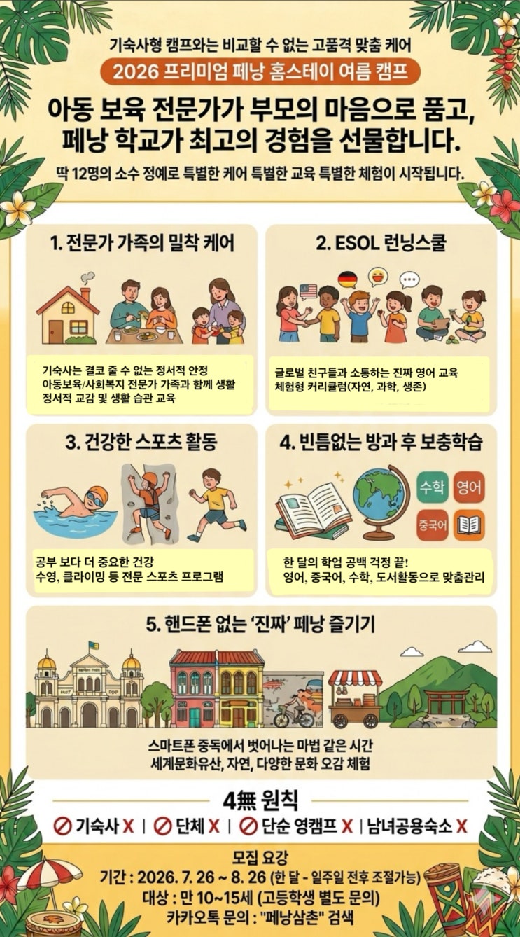 말레이시아 페낭 영어캠프, 비용부터 생활관리까지 한눈에 보는 완벽 정리