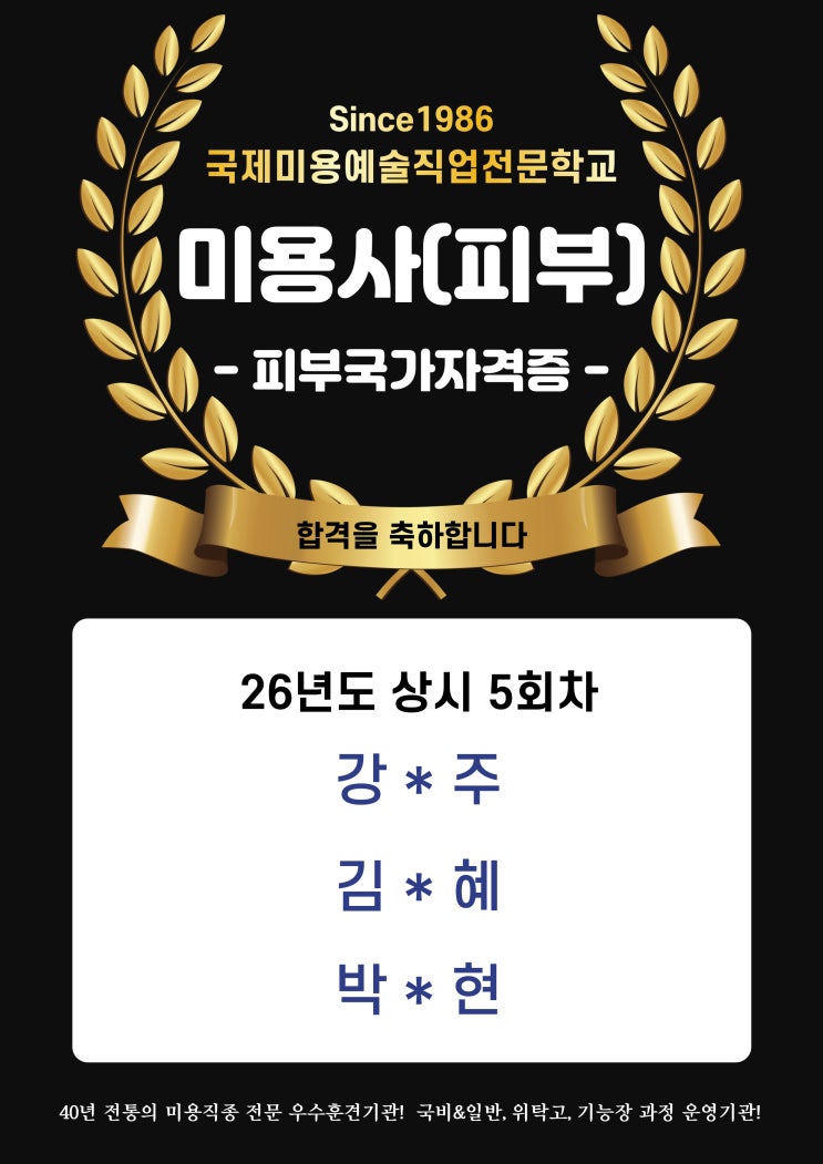 [잠실송파미용학원] 미용사 - 피부 합격자(26년도 상시 5회차)