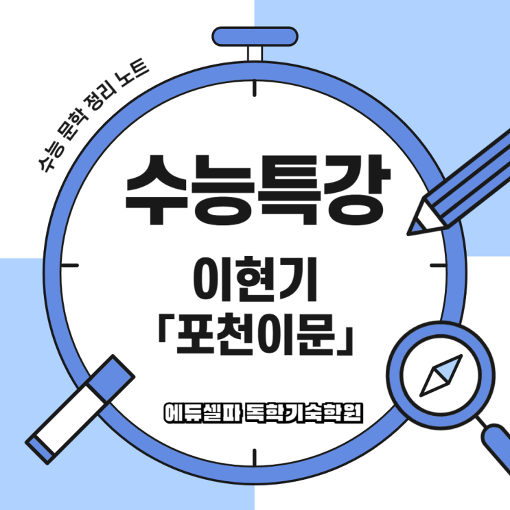 안녕하세요. 에듀셀파 독학기숙학원 하린쌤입니다. 오늘은 평안인문 영역에서 반드시 짚고 넘어가야 할 작품, 2027학년도 수능특강에 수록된 고전 산문 이현기의 「포천이문」을 깊이 있게 분석해보겠습니다. 이 작품은 당대 정치 현실을 향한 날카로운 통찰이 담겨 있습니다. 특히 ‘이문(異聞)’이라는 제목처럼, 기이한 이야기의 형식을 빌려 현실을 더욱 냉정하게 드러내고 있다는 점이 핵심입니다. 이현기의 「포천이문」줄거리 분석 포천 현감으로 부임한 정 공(정태화)은 어느 날 밤, 기이한 행차와 함께 나타난 조선 초기의 명재상 하륜의 혼령을 만나게 됩니다. 하륜은 자신의 묘소가 황폐해진 것을 슬퍼하며 돌봐줄 것을 부탁하고, 정....... <img src="https://blogthumb.pstatic.net/MjAyNjA0MDRfMjAy/MDAxNzc1Mjg0NzMzNjQy.DTHXKmEzx6qITYGYRfUVbcAD7qRWXWMYP8snYCYAYlwg.eLvDMonVuI9i5vpo23mHWx3iTS1K4yu2g2tIA4s0pKMg.PNG/%C1%A6%B8%F1%C0%BB_%C0%D4%B7%C2%C7%D8%C1%D6%BC%BC%BF%E4_-001_%2834%29.png?type=s3" />