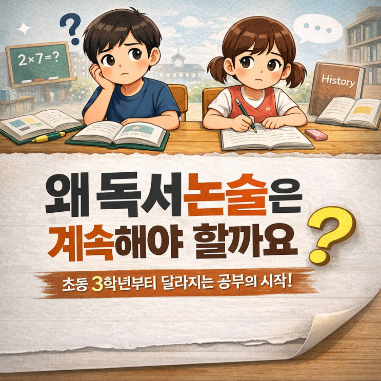 안녕하세요, 박준영논리속독입니다! 많은 부모님께서 "초등 때 독서논술은 필수"라고 생각하시지만 막상 학원을 선택할 때는 고민에 빠집니다. "책 읽고 감상문만 쓰면, 정말 성적이 오를까?" "중학교 가기 전에 비문학 독해도 잡아줘야 한다는데..." "역사 배경지식이 부족해서 사회 과목을 너무 어려워해요." 이 모든 고민, 혹시 각각 다른 학원에서 해결하고 계시진 않나요? 정보의 홍수 속에서 아이들은 지치고, 부모님들의 비용과 시간 부담은 늘어만 갑니다. 하지만 한 곳에서 완벽하게 끝내야 합니다. 박준영은 독서논술(표현력) + 비문학 독해(지식 탐구) + 역사(배경지식)의 삼박자 밸런스를 맞.......