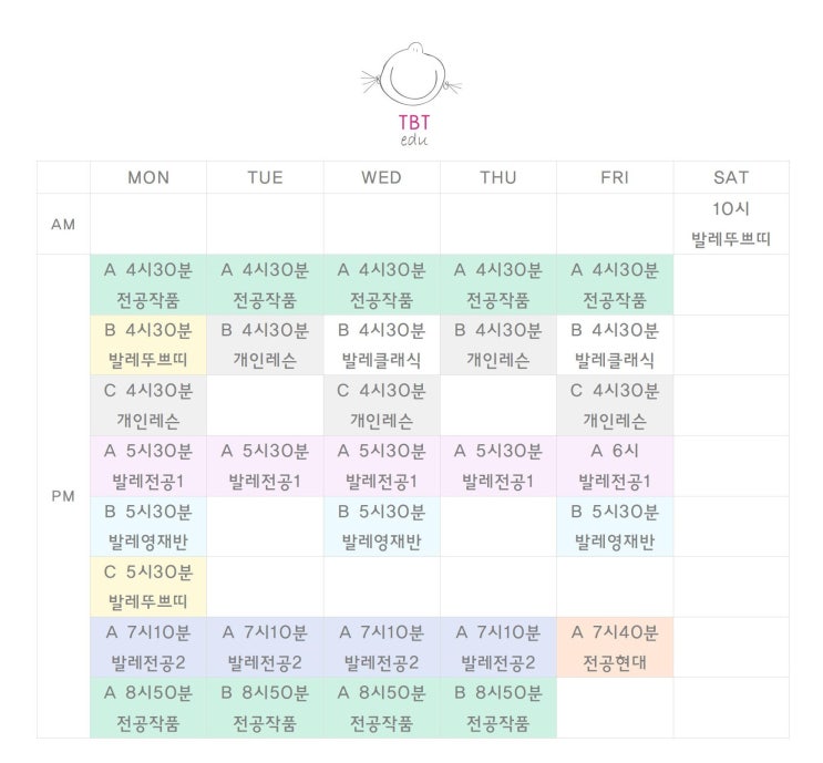 [더발레씨어터 다산] 학생반 시간표