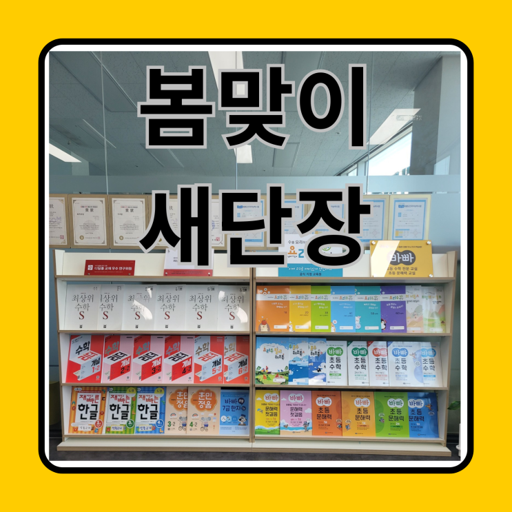 오산대역국어학원 와이스터디학원입니다 ^-^ 26년 새해, 새학기, 봄을 맞아 오산대역국어학원도 새단장을 해보았습니다. 맨날 교재 스터디랑 워크북 만들기, 한글 수업 커리만 만들어봤지, 인테리어나 뭐든 꾸미기에는 영 소질이 없어서 계속 지인들의 도움을 받아 이렇게 저렇게 정리하고는 있었는데요. 이번에는 바빠 문해력 브랜드를 새로 가맹하면서, 학원건물 1층에 있는 입간판도 새로 교체했고, 전면책장도 새로 들여놓고 오산대역국어학원에서 수업하는 교재들을 이쁘게 전시했어요^-^ 설명서가 조금 이상하게 써있어서 이해하는데에 시간이 조금 걸렸는데, 한번 이해한 후에는 크게 어렵지 않게 혼자 2개를 다 조립했답니다~ 새로운 재....... <img src="https://blogthumb.pstatic.net/MjAyNjA0MDVfMjUz/MDAxNzc1Mzg2Mjg3OTI4.F2azBtC42PPGeayLcrMfUB2QK02wjrRASveNPaw62GQg.s5YMCFzaTyvISHthZDDeOp2LkcHIOmuh9Wyo0Nt4YK4g.PNG/%C0%E7%B9%CC%C0%D6%B0%D4_%B0%D4%C0%D3%C7%CF%B8%E7_%C7%D1%B1%DB%B6%BC%B4%C2_%C7%D0%BF%F8_%2814%29.png?type=s3" />