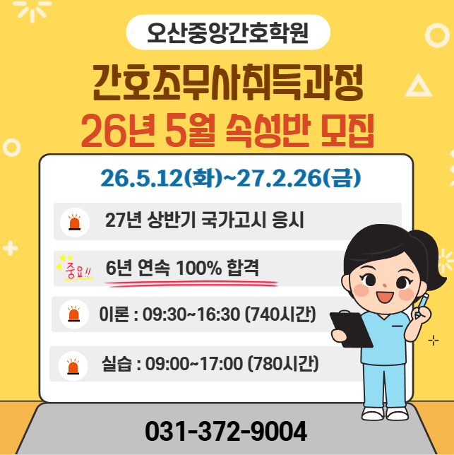 [오산중앙간호학원] 26년도 5월 속성반 모집