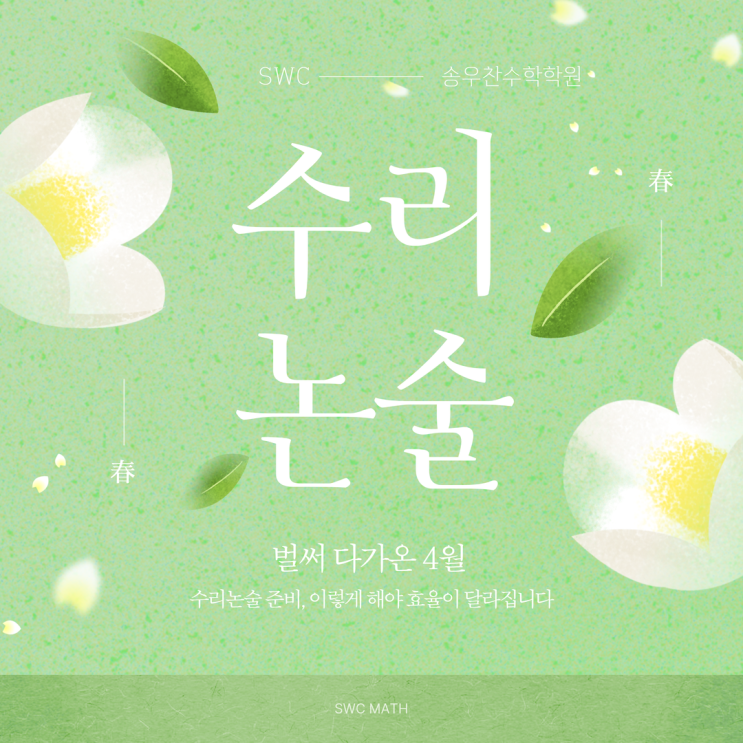 안녕하세요, 평촌수학학원 산본수학학원 송우찬수학학원입니다. 송우찬수학학원은 수년간 수리논술을 전문적으로 지도해 오며, 꾸준한 입시 결과를 바탕으로 학생들의 성장을 함께해 왔습니다. 수리논술은 흔히 어렵게 느껴질 수 있지만 올바른 방향으로 준비한다면 충분히 도전해볼 수 있는 전형입니다. 그럼에도 불구하고 수리논술에 대한 정보가 부족하고, 이를 체계적으로 준비하기 어려워 막막함을 느끼는 학생들이 많습니다. 그래서 오늘은 수리논술을 보다 효과적으로 준비하는 방법을 안내해 드리겠습니다. 수리논술, 어떻게 준비해야 할까요? 수리논술에서 가장 중요한 것은 기출문제 분석입니다. 간혹 여러 문제를 선별적으로 골라 풀....... <img src="https://blogthumb.pstatic.net/MjAyNjAzMzFfMjUw/MDAxNzc0OTU4MzMwOTM3.pDLcX63ZTe4TmISTPB7zyzJqbHMn3QVYIof1WlEq9eUg.xb4KMfHXlDahiDvm8VNWjoFuIGxxseTXhgb2mhKm1fMg.PNG/%C1%A6%B8%F1%C0%BB_%C0%D4%B7%C2%C7%CF%BC%BC%BF%E4_%2813%29.png?type=s3" />