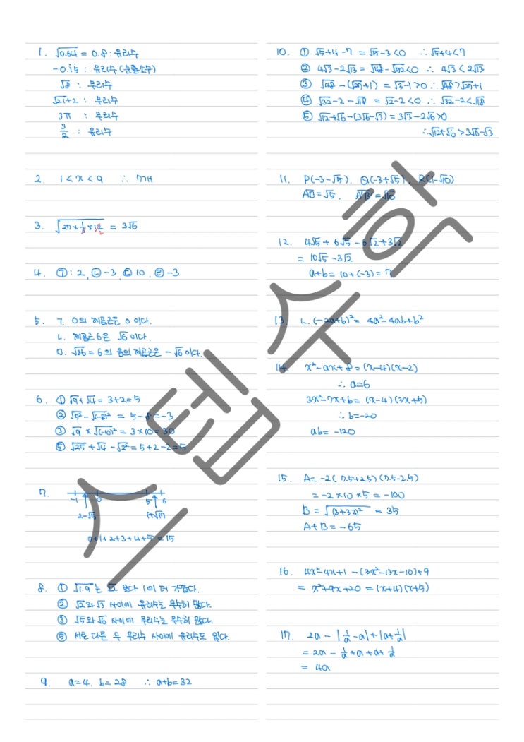 모락중 2023년 3학년 1학기 수학 중간고사(1차지필) 풀이
