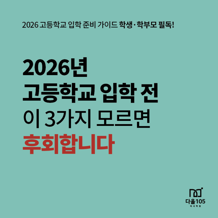 2026년 고등학교 입학 전 이 3가지 모르면 후회합니다.