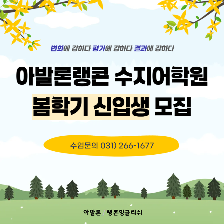 안녕하세요 기본기부터 시험 결과까지 책임지는! 수지 상현동에 위치한 초·중등 영어학원 아발론랭콘잉글리쉬입니다. 아발론랭콘 수지어학원 봄학기 신입생 모집 영어 실력의 차이는 시작의 차이에서 만들어집니다. 체계적인 커리큘럼과 검증된 학습 시스템, 아발론랭콘 수지어학원에서 봄학기를 시작하세요! 모집 대상 ▪️초등 / 중등 영어 과정 ▪️레벨테스트를 통한 개인별 맞춤 수업 수업 특징 ✔️ 아발론랭콘 본사 커리큘럼 적용 ✔️ 읽기·쓰기·듣기·말하기 4대 영역 균형 학습 ✔️ 소수정예 수업으로 꼼꼼한 관리 ✔️ 내신 + 실력 향상을 동시에 잡는 수업 수업 문의 031-266-1677 영어는 이제 단순한....... <img src="https://blogthumb.pstatic.net/MjAyNjAxMjJfMTIz/MDAxNzY5MDUzNjA5MjIw.NABeGpb-RtwjnNCpW2v6efJpHHAJV5lwPHQ4akPq_GAg.QgHleO3iVfMxJecFE526wBI4rbI8bM1FkKRXikASecEg.PNG/%BB%F3%C7%F6%B5%BF_%BF%B5%BE%EE%C7%D0%BF%F8-001.png?type=s3" />