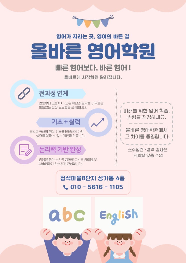 안녕하세요! 올바른 영어학원의 열정 가득한 로이스 T입니다! 우리 아이들을 믿고 맡겨주시는 학부모님들께 감사한 마음을 담아, 2026년 새롭게 업그레이드된 우리 학원의 운영 시스템을 소개해 드리려고 해요. 4년 만의 변화인 만큼, 더 꼼꼼하고 알차게 준비했으니 끝까지 확인해 주세요! ✨ 2026년, 올바른 영어학원이 더 강력해집니다! 아이들의 실력을 제대로 키우기 위해 고민하고 또 고민했습니다. 올해부터 달라지는 세 가지 핵심 포인트를 짚어드릴게요! 1️⃣ 수강료 조정 및 구성 변경 (3월부터 적용) 학부모님들의 번거로움을 덜어드리고자, 이제 수강료 안에 교재비와 프로그램 사용료를 모두 포함했습니다! 수업의 질은....... <img src="https://blogthumb.pstatic.net/MjAyNjAxMTlfMTU0/MDAxNzY4ODE0NDcwMzAw.5vMzsNvjh2mkjKyJo0cNwgCgLbN5IMSCpwG6ikwra-wg.tZjeEo2pwbIbAFotSEKgwqyCMJ8G0qD5p_-yfz8bxtkg.JPEG/26%B3%E2%B5%B5_%BC%F6%B0%AD%BB%FD%B8%F0%C1%FD.jpg?type=s3" />