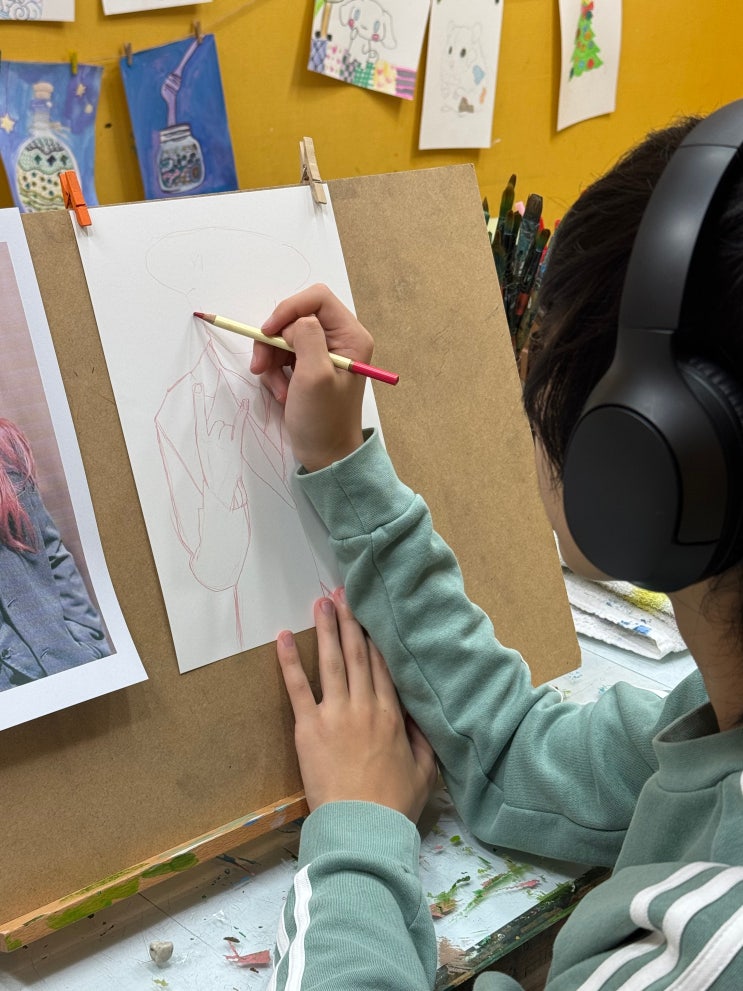파주시 운정에서 아이들이 직접 한 권의 그림책을 만드는 바퀴달린그림책 운정교하센터 플러스미술학원입니다. 이곳에는 9살 때부터 지금까지, 그림책과 함께 천천히 자라온 친구들이 있어요. 그중 한 명이 바로 이번에 중학교 3학년이 된 배형욱 작가예요. 어릴 때는 한 장의 그림과 한 문장으로 시작했던 형욱이가 이제는 영문으로 글을 쓰고, 직접 그림을 그려 영문 그림책을 만들고 있습니다. 시간이 쌓여 만들어진 성장이 참 인상적인 순간이에요. < 이번 주 그림 기법 수업 – 인물 드로잉 수업 > 이번 주에는 인물 드로잉 수업을 진행했어요. 얼굴의 비율, 표정, 시선, 인물의 분위기까지 이야기 속 인물을 어떻게 그림으로 표현할....... <img src="https://blogthumb.pstatic.net/MjAyNjAxMzFfNDAg/MDAxNzY5ODQwMjAxNzQ5.9j045ZGf8ThHII4yotI2pO3sB2OcMFC-hJwZ-_aX-eAg.Qrof0bdRxdXrfPY7I-hjQkHyxPSuOSdqSSE8_P3cCLIg.JPEG/KakaoTalk_20260129_181112772.jpg?type=s3" />
