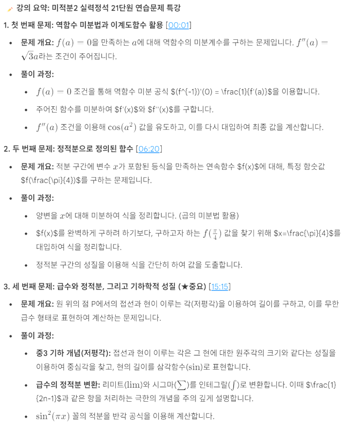 [미적분2] 실력정석 21단원 연습문제 핵심 요약 & 풀이 (역함수, 정적분)