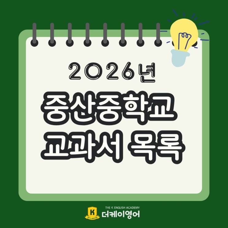 2026년 중산중학교 학년별 교과서 목록 [ 중산동 영어학원 더케이영어 ]