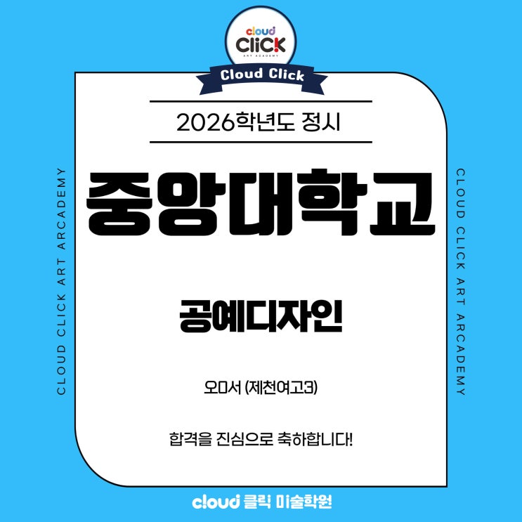 2026 중앙대 공예디자인 정시합격!! 중앙대 2명합격!! 5년연속 중앙대합격!! 원주클라우드클릭미술학원