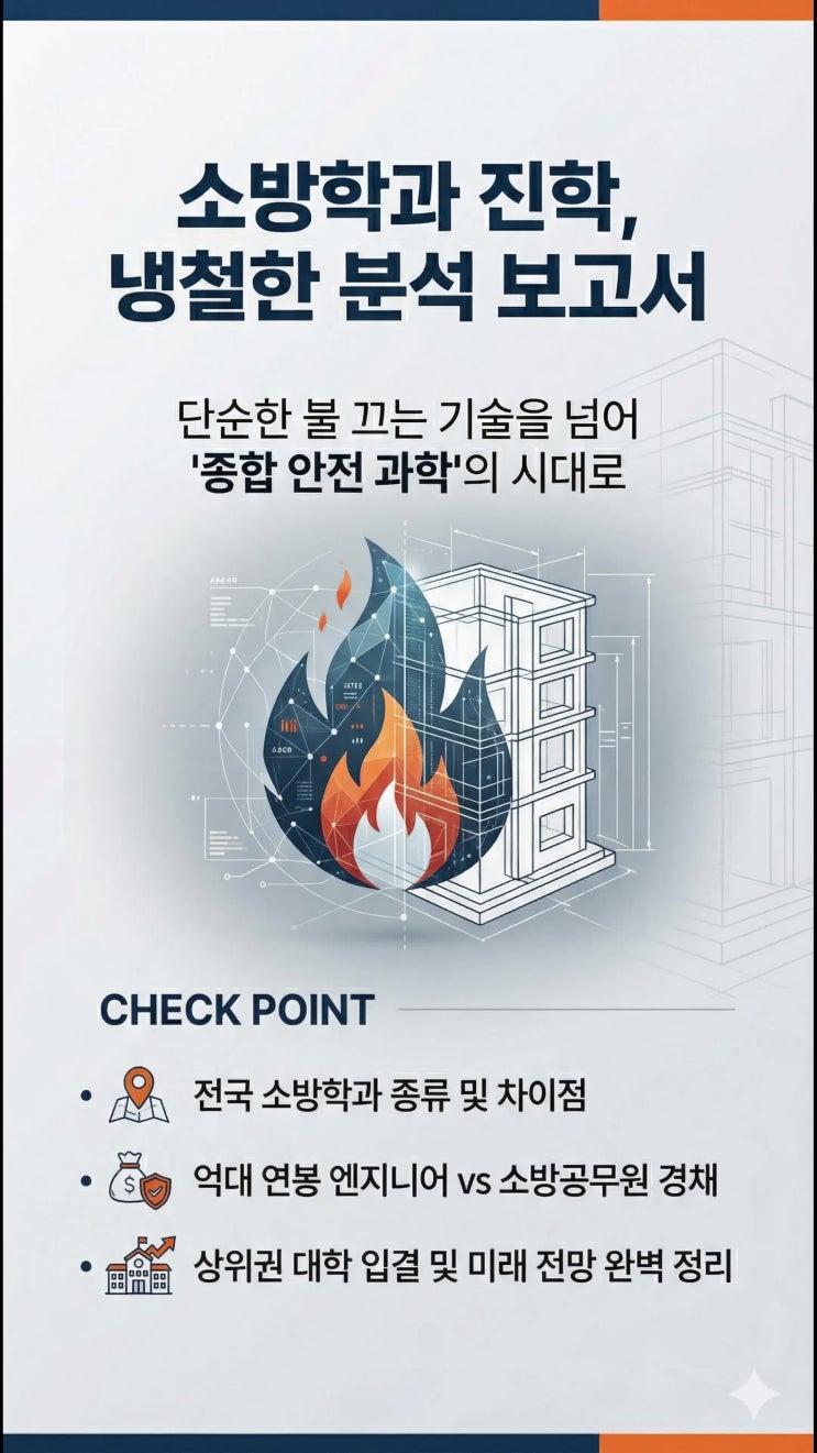 1. 소방학과, 대체 뭘 배우는 곳인가요? 먼저 오해부터 풀어볼까요? 소방학과라고 해서 4년 내내 불 끄는 연습만 하는 게 아니에요! 현대의 소방학은 공학, 행정학, 법학, 보건학이 결합된 아주 복잡하고 고도화된 **'종합 안전 과학'**이랍니다. 건물이 높아지고 전기차 같은 신기술이 나오면서 재난의 양상도 예전과는 완전히 달라졌거든요. 그래서 여러분은 물리, 화학 같은 기초 과학부터 시작해서 복잡한 소방 관련 법규, 그리고 첨단 재난 관리 시스템까지 아주 폭넓은 공부를 하게 됩니다. 2. 이름이 다르면 배우는 것도 다르다! (학과 종류 분석) 전국에는 정말 많은 소방 관련 학과가 있지만, 이름에 따....... <img src="https://phinf.pstatic.net/image.nmv/blog_2026_03_27_4070/h2b7gFJJTm_01.jpg?type=f480x480" />