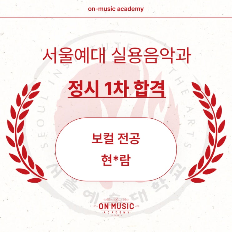 안녕하세요 온뮤직 실용음악학원 중랑캠퍼스 입니다! 오늘은 중랑캠 수강생의 따끈따끈한 최종 합격 소식을 전해드립니다! 서울예술대학교 보컬 1단계 합격 늘 성실하고 꾸준히 준비해온 노력이 이렇게 멋진 결과로 이어졌네요! 최종 합격을 진심으로 축하드립니다!! 온뮤직실용음악학원 중랑캠퍼스는 1 대 1 수업 맞춤형 커리큘럼 최고의 강사진 자유로운 연습실 사용 의 원칙을 지키면서 최상의 수업을 제공하기 위해 오늘도 노력하고 있습니다!! 더 궁금하신 점이 있으시다면 아래의 톡톡, 전화, 문자, 카톡 등으로 언제든 편하게 문의주시면 감사하겠습니다 ^^ ☎ 문의 전화 ☎ 0507-1414-1970 [ 네이버 톡톡 ] [SNS] [ 오시는 길 ] [ 학원 등....... <img src="https://blogthumb.pstatic.net/MjAyNjAxMjlfMTU4/MDAxNzY5NjcxNjY5MDU3.yUgeqtO42r9aXEDyD8dxNhpuY_v42BvrZgad2m4DtMog.joBnwuipfIAq6I4_p4s6sCwxv9ztE0dqU9Fxh7sCEfAg.JPEG/26%C7%D0%B3%E2%B5%B5-%BC%F6%BD%C3-%C7%D5%B0%DD%C0%DA-007.jpg?type=s3" />