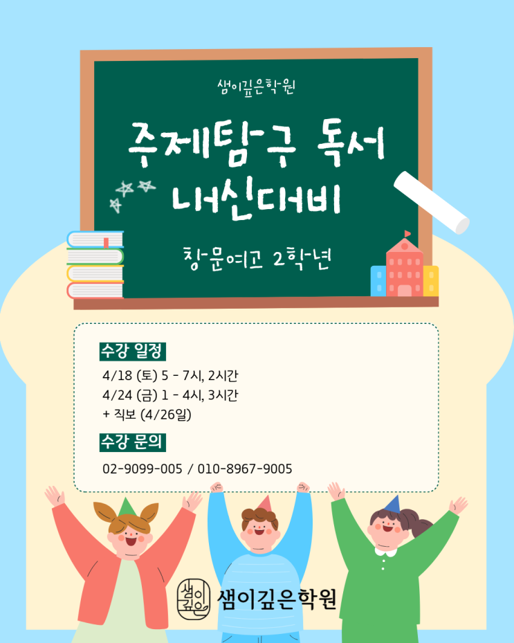 성북구 국어, 수학 학원 샘이깊은학원 창문여고 2학년 주제탐구 독서 내신대비 안내