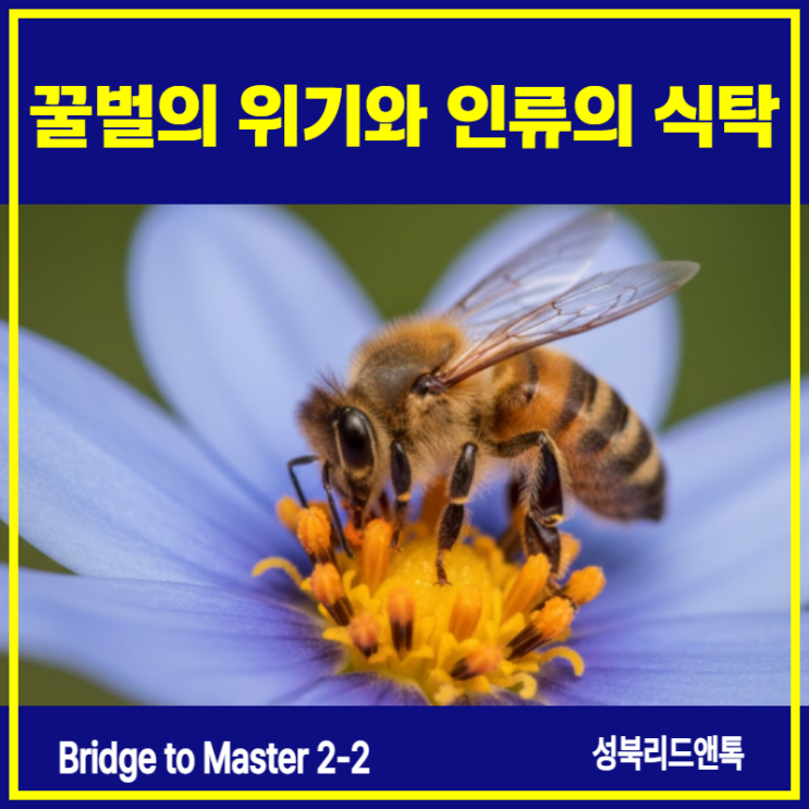 안녕하세요, 성북 리드앤톡 영어학원입니다. 오늘은 [Bridge to Master 2] 과정에서 다룬 흥미롭고도 심도 있는 기사를 소개해 드리려 합니다. 꿀벌이 사라지면 우리의 식탁도 사라질까요? 최근 우리 학생들은 "New 'Superfood' Could Save Honey Bee Colonies"라는 기사를 통해 현대 생태계의 가장 시급한 문제 중 하나인 꿀벌 멸종 위기를 다루었습니다. 기사 내용에 따르면, 꿀벌은 전 세계 작물의 약 35%의 수분을 담당하며, 미국에서만 매년 150억 달러 가치의 식량 생산을 돕고 있습니다. 우리가 먹는 세 입 중 한 입은 꿀벌 덕분인 셈이죠. 하지만 2024년에서 2025년 사이 미국 내 양봉 꿀벌의 절반 이상이 사라....... <img src="https://blogthumb.pstatic.net/MjAyNjAxMjlfMjMy/MDAxNzY5NjczODE2MDI3.Xl20ZJA-NTl18PgbG98o3JaV23hteOf2V8TpbfgeEXEg.j3DY2onUu1FdqH22lJ4h0ZwB3FPrcX_F_0i-fjLBNRUg.PNG/%B2%DC%B9%FA2.png?type=s3" />