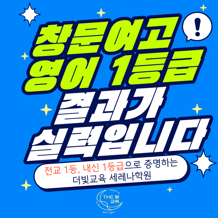 #더빛교육세레나학원 #창문여자고등학교영어학원 #창문여고영어 #창문여고영어학원 안녕하세요! 창문여자고등학교 영어 내신의 절대 강자, 더빛교육 세레나학원입니다! 창문여고 영어 시험을 한 번이라고 치러본 학생이라면 공감할 거예요. 영어 공부를 정말 열심히 했는데, 교과서를 통째로 외웠는데도 왜 1등급은 안나올까요? 그 이유는 다양한 어휘를 알아야 하고, 문장의 구조 파악과 변형 등 창문여고 영어 시험에 익숙해야 하기 때문입니다. 더빛교육 세레나학원은 이미 창문여고 전교 1등과 1등급 수강생을 배출하며 창문여고 영어 공부의 해답을 증명하고 있어요. 창문여고 영어는 무엇이 다른가? 창문여고 영어 내신은 학생들의 실력을....... <img src="https://blogthumb.pstatic.net/MjAyNjAxMjdfNTEg/MDAxNzY5NTE2NDI0NDM4.6kdVpfL9LqbvN92ujE2KAEQVhW1cR4Ge-MaMMDfVk3Yg.fJwqgsQaBe6YPKnNQ5vi9AkXmxlAaENxJW0OmopgbVEg.PNG/260127_%C3%A2%B9%AE%BF%A9%B0%ED_%BF%B5%BE%EE.png?type=s3" />