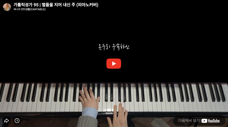 가톨릭 성가 단선 선율을 바탕으로 코드 파악 및 화성 진행을 구성하고, 피아노 솔로 연주용으로 왼손 반주를 추가한 악보입니다. 원곡의 선율을 충실히 유지하면서도, 혼자 연주해도 음악적으로 풍성하고 자연스럽게 들리도록 만들었어요. 피아노 솔로 연주 자체의 아름다움과 흐름에 초점을 두어, 잔잔하고 안정적인 반주 패턴으로 편곡되었습니다. 개인 연습용, 묵상용, 연주 감상용으로 활용을 추천 드립니다 :) <img src="https://blogthumb.pstatic.net/MjAyNjAxMzFfMzAw/MDAxNzY5ODIyNDM0NDAx.n3BOHsebWmmMlxpKn4JcMFbUI7cojt1V3OJJIqOx3oYg.4UULqbFrdr4JdpfZVr2nvaBKF4zTfm_49ZiOER-dgMMg.PNG/%BD%BA%C5%A9%B8%B0%BC%A6_2026-01-31_%BF%C0%C0%FC_10.20.24.png?type=s3" />
