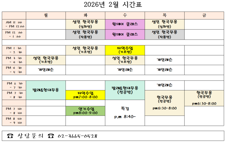 ♥2월 시간표♥