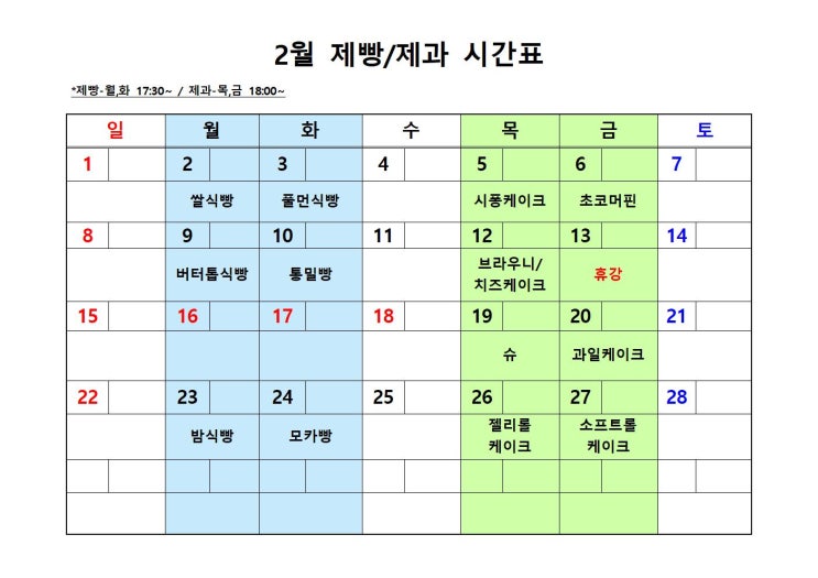 2월 제과제빵 시간표