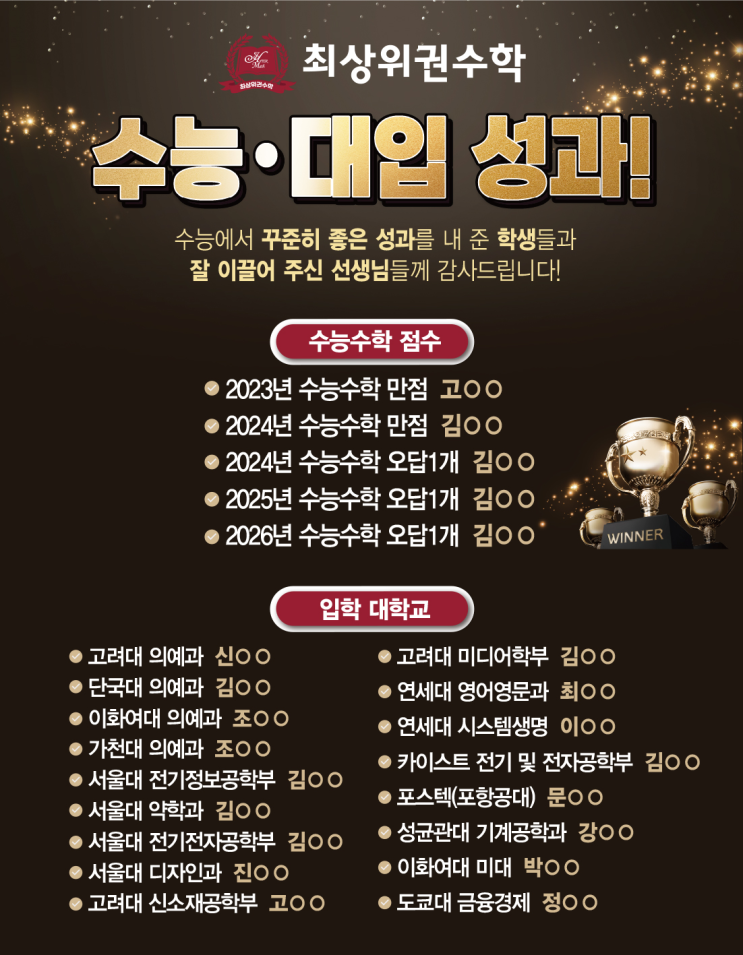 잠실새내 수학학원 수능 만점보다 더 지독한, 4년 연속 '압도적' 성과